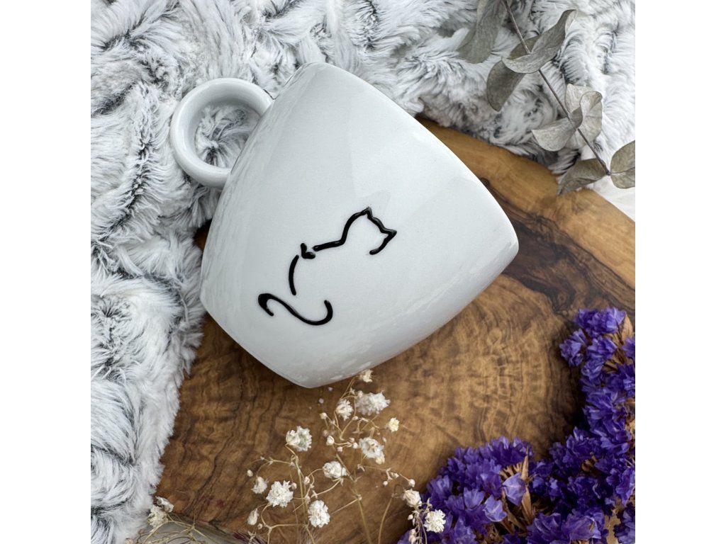 Ručně malovaný bílý porcelánový hrnek s minimalistickým designem