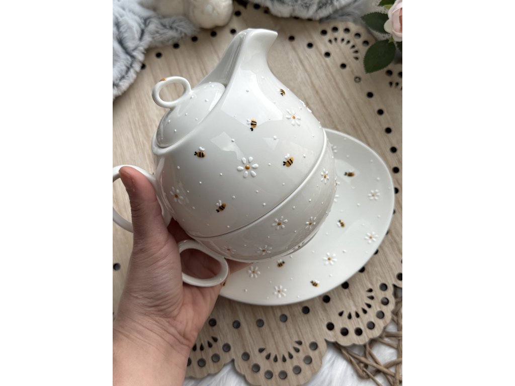 Ručně malovaná sada s motivem kytiček a včeliček 3v1